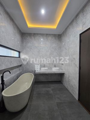 DIJUAL EXCLUSIVE TROPICAL HOUSE !! Spesifikasi: - Brand New House - Posisi Badan - Bangunan 2 lantai - Luas Tanah 267 m² - Luas Bangunan 390 m² - Kamar tidur 5+2 - Kamar mandi 4+1 - Listrik 5.500 Watt - Air PAM - Garasi 2 mobil - Carport 2 mobil - Sertifikat SHM on Hand - Hadap Tenggara - Semi Furnished - Terletak di dalam cluster dengan ROW jalan lebar (bisa 4 mobil) - Private swimming pool 4x8 meter Keunggulan : - AC 3 Unit Terpasang - kompor tanam 1 unit - High ceiling 4 meter - Double Master Bedroom (Lt 2 dan Lt 1) - Lantai parquette untuk kamar utama - Lantai HT 1x1 meter - Atap baja ringan