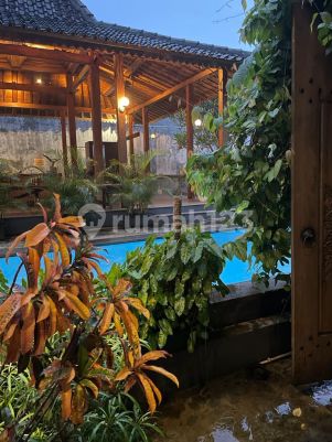 Bintaro Jaya Sektor 9 Rumah Taman LT = 600m2 LB = +/- 200m2 (plus joglo +/- 60m2) - RUMAH DEPAN (1 lantai dg Rooftop garden) >> Foyer >> R duduk & R makan >> Dapur >> Bathroom >> KM service >> Gudang / KT ART >> R cuci jemur >> Rooftop garden - RUMAH BELAKANG (2 lantai) >> 1 Master BR + ensuite bathroom (lt 2) + balkon >> 2 BR >> 1 Bathroom >> R duduk - JOGLO besar (7m x 9m) - KOLAM RENANG (lap pool 2.5mx13.5m) - TAMAN LUAS (di dalam dan dibagian depan) - Carport 2 mobil (plus 1 paralel depan rumah) - Listrik 11.000