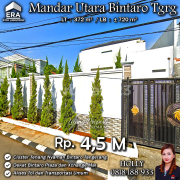 INFO UPDATE LISTING RUMAH MINIMALIS MODERN HOEK MANDAR UTARA BINTARO TANGERANG Alamat: Perum Bintaro Jl. Mandar Utama Kel. Pondok Karya Kec. Pondok Aren Tangerang Detail Properti: - Luas Tanah : 372 m² - Luas Bangunan : ± 720 m² Keunggulan Lokasi: Lokasi Hoek, Tenang dan Nyaman dalam Cluster Harga: Rp. 4,5 Miliar Harga BELUM Termasuk biaya Pengosongan dan Balik Nama. (Harga di atas belum termasuk BPHTB 5%, biaya lelang 2%, Pajak Pemerintah 1%, dan PBB jika ada) **Kenapa Memilih Kami?** Dengan pengalaman 12 tahun di bidang lelang, kami menyediakan solusi satu atap untuk semua transaksi properti Anda. Proses yang jelas dan bersih sehingga Anda bisa tenang hingga serah terima. Hubungi Kami untuk Info Lebih Lanjut: - Holly: 081818xxxx - Ferry: 0816116xxxxLelangProperti #PropertiIndonesia #InvestasiProperti #PropertyInvestment #RumahDijual #AgentProperti #JakartaRealEstate #JualBeliProperti #EraIndonesia #AgenPropertiTerpercaya #Investasi #RealEstateAuction #Tangerang #Rumahnyaman #RumahdijualTangerang #pondokaren #Rumahasri #Pondokkarya #Bintaro #MandarUtama