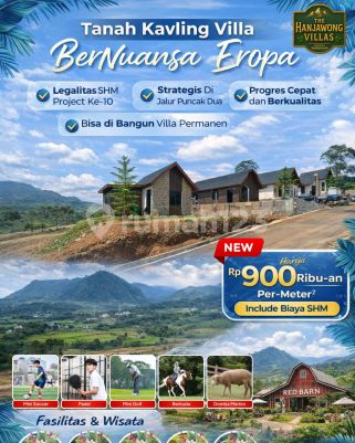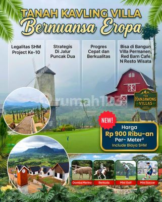 Temukan keindahan hidup yang sesungguhnya di THE HANJAWONG VILLAS - kawasan kavling VILLA bernuansa Eropa di Jantung Wisata Puncak 2, Bogor. Bayangkan setiap pagi Anda disambut udara sejuk di ketinggian 500 Mdpl dengan view pegunungan hijau Hanjawong yang membentang di depan mata. Tempat dimana ketenangan alam bertemu dengan kemewahan desain kawasan yang terencana indah. Tempat dimana bisa duduk santai di teras, menyeruput kopi hangat, ditemani semilir angin dan kabut tipis diantara pepohonan pinus. FASILITAS PREMIUM : ●Jalan lebar cor beton yang nyaman dan kokoh, akses masuk mobil sampai ke area kavlingnya. ●Lapangan Mini GOLF untuk menikmati akhir pekan elegan. ●Mini ZOO bagi keluarga dan anak-anak. ●Menara Kincir Angin & Menara Jam London sebagai ikon spot foto bernuansa Eropa. ●Lapangan Mini SOCCER untuk aktivitas rekreasi bersama. ●Lapangan PADEL untuk aktivitas Trend dan sosialita Anda. ●Legalitas SHM (Sertifikat Hak Milik) - aman, bersih, dan jelas. LOKASI STRATEGIS : ●Di Jalur Utama Puncak 2 Bogor ●Zona Kuning - Bisa dibangun permanen ●Ketinggian 500 MDPL - Udara Sejuk & Bebas Polusi ●Dikelilingi Kota-Kota Besar seperti : Jakarta, Depok, Cibubur, Sentul, Cileungsih, Cibinong, Citeureup, Jonggol, Bekasi, Cibarusah, Cikarang, Cariu, Tanjungsari, Bogor Timur. ●Akses mudah ditempuh 90 Menit dari Exit Tol Cibubur dan Nagrak. ●Dikelilingi wisata alam, glamping, dan penginapan yang terus berkembang - menjadikan kawasan ini potensi investasi terbaik saat ini di Puncak 2. ●Dekat Wisata Populer : The Green Villa's, Wisata Villa Khayangan, Wisata Curug Cipamingkis, Wisata Gunung Batu, Cafe Kidemang, dll Alasan Tepat untuk Memiliki Sekarang: ●Harga tahap 2 masih harga perdana (sebelum naik!) ●Developer terpercaya "Nuansa Alam" - sudah berpengalaman dilebih dari 10 proyek kavling dan ada side businessnya. ●Cocok untuk VILLA pribadi, Homestay, atau investasi jangka panjang. ●Aset properti dengan Capital Gain Tinggi berada dikawasan Wisata Puncak 2 bogor yg selalu meningkat harganya 15% - 30% setiap tahunnya. Harga Mulai 580 ribu saja permeternya sudah bisa punya Tanah Kavling bernuansa EROPA Tanpa harus jauh² ke Luar Negeri Cukup ke Kavling The Hanjawong Villa
