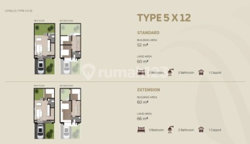 Type 5 x 12 HARGA MULAI 1.2 M STANDARD LT 60 LB 52 KT 2 KM 2 1 Carport EXTENSION LT 66 LB 60 KT 3 KM 2 1 CARPORT Pondasi Finishing Lantai Ruang Tamu & Ruang Makan Tangga Dalam Kamar Tidur Kamar Mandi Garasi & Carport Finishing Dinding Eksterior Interior Kamar Mandi Atap Pintu & Jendela Pintu Jendela Plafon Perlengkapan Sanitasi Kamar Mandi Utama Kamar Mandi Bedak Kamar Mandi Anak Kamar Mandi Pembantu untuk tipe 7 Pasokan Air Kapasitas Pasokan Listrik Tipe 7 Tipe 6 & 5 Pancang Mini Genteng Homogen Genteng Homogen Genteng Homogen Genteng Homogen Genteng Homogen : Cat Eksterior Cat Interior : Genteng Homogen :Rangka Baja Ringan & Atap UPVC untuk Tipe 7 Rangka Baja Ringan & Genteng Beton untuk Tipe 5 & 6 : Pintu Kayu Rekayasa: Rangka Aluminium Papan Gipsum Toilet dengan Jet Washer (Tipe 7 & 6) Wastafel Dinding dengan Cermin Set Shower Air Panas & Dingin (Instalasi air panas) (saja) Wastafel Dinding dengan Cermin Toilet dengan Jet Washer Wastafel Dinding dengan Cermin Set Pancuran Air Panas & Dingin (Hanya instalasi air panas) Toilet dengan Jet Washer Toilet Jongkok dengan Keran & Jet Washer :PDAM, dengan tangki atap 1000L 3500 VA : 2200 VA