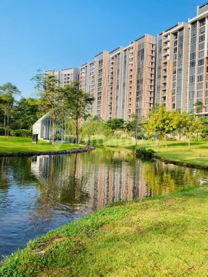 DISEWAKAN APARTEMEN MARIGOLD - NAVAPARK BSD Tower 2 Lantai 12 Luas semi gross 90.360m2, netto 77.640 KT 2 KM 2 (1 ensuite bathroom) Full Furnish Design Interior View : Botanic Park and river Harga sewa 160 jt/ tahun (nego tipis) iv*l