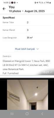 "Disewakan Marigold Tower 7 Navapark BSD LB : 91,51 m KT : 2+1 KM : 1+1 Full Furnished Kitchen set 4 AC View Botanical Park harga : 190 jt/th min 2th Hubungi: Wilbert Era Fiesta Suvarna Sutera "