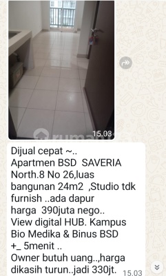 Jual Cepat apartemen BSD Saveria North 8 no 26. luas 24 m2 type studio unfurnished, cocok buat anak muda. View digital hub , kampus bio medika , 5 menit ke Binus BSD yg baru di bangun. terletak di pusat bisnis BSD. Universitas Prasetya Mulya dan Rumah sakit. banting harga asal terjual 330 juta. hub segera WA 0813xxxxxxxx