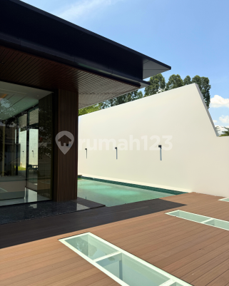 *Tropical Modern One Storey Luxurious House with Private Swimming Pool and Spacious Garden * Lt 893m2 Lb 700 m2 Kt 5 +2 km 6 +1 + powder room Storage room 2 Private Swimming Pool Ruang karaoke + Ruang gym Listrik 16.000 watt Furnished Spacious Garden Laundry room Hadap Timur Laut PPJB Harga Rp 45M nego