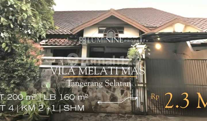 *DIJUAL RUMAH DI VILA MELATI MAS, TANGSEL (CH)* Spec : - LT 200 m² - LB -+160 m² - KT 4 - KM 2+1 - 1 Gudang - SHM - Carport 1 mobil - 1 lantai - Hadap Selatan - Siap huni - Bebas banjir - Bonus AC 5 unit & 1 unit Water heater *HARGA 2.3 M*