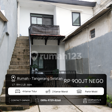 DIJUAL RUMAH & TANAH TANPA PERANTARA (LOKASI STRATEGIS NAMPEL JAKSEL - PISANGAN, CIPUTAT TIMUR) Lokasi: Pisangan, Kec. Ciputat Timur Tangerang Selatan (Tangsel) Spesifikasi Rumah: Luas Tanah: 81 m² Luas Bangunan: 66 m² Kamar Tidur: 4 Kamar Mandi: 2 Legalitas: Sertifikat Hak Milik (SHM) Keunggulan Lokasi (Selling Point): Akses Transportasi: Dekat dengan Stasiun MRT Lebak Bulus & Pintu Tol. Pusat Pendidikan: Sangat dekat dengan Kampus UIN Syarif Hidayatullah & Sekolah Labschool. Bebas Banjir: Lingkungan aman, nyaman, dan bebas dari banjir. Strategis: Akses sangat mudah menuju Jakarta Selatan dan pusat bisnis Tangsel. Akses & Lingkungan: Lingkungan asri dan tenang di kawasan Pisangan. Dengan total 4 kamar tidur, rumah ini sangat cocok untuk hunian keluarga besar atau dikembangkan menjadi aset investasi kos-kosan karena lokasinya yang sangat dekat dengan area kampus. Harga: Rp 90000xxxxNego) Info & Survey: 0896xxxxxxxxa.n. Ade Jepi) Kode Listing: TGS-P81
