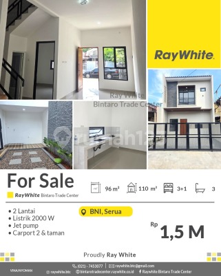 Rekomendasi properti dengan penawaran terbaikRumah123 adalah situs teknologi jual beli dan sewa properti terdepan di Indonesia, yang hadir sejak tahun 2007 dan telah melayani jutaan orang di Indonesia. Rumah123 senantiasa berkomitmen untuk membuat pengalaman 'Jual Beli dan Sewa Properti Lebih Mudah' dengan dukungan dari developer terkemuka serta agen profesional.