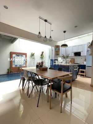 Serenia Hills - Cluster Titan SHM Luas Tanah : 180 m2 Luas Bangunan : 290 m2 Private swimming pool 3 bedrooms 4 bathrooms 1 multipurpose room 1 bathroom for ART Mini rooftop / multipurpose area / laundry room 3 AC + 4 ceiling fans Screened porch terrace Home library + home office Furnished (built in furniture and kitchen) Listrik 5.500 watt Water Heater Carport 2 Car Open Price : Rp. 6,950 Milyar (negotiable)