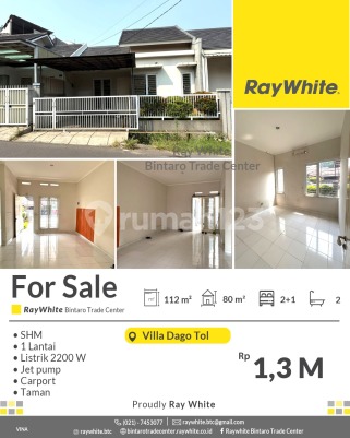 TERMURAH! RUMAH DALAM KOMPLEK DI VILLA DAGO TOL CIPUTAT Spesifikasi Luas tanah : 112 m² Luas bangunan : 80 m2 Kamar tidur 2+1 Kamar mandi 2 1 lantai Listrik 2200 Va Jet Pump carport taman SHM Lokasinya strategis sangat bagus Dekat ke : - RS Buah Hati Ciputat - Pompa bensin Shell - Universitas pembangunan jaya - Stasiun Sudimara dan Jurangmangu - Pasar Ciputat - Bintaro Xchange - Sekolah SMP dan SMA Harga Rp1,3 M nego *(vna)