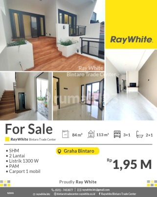 For Sale! Rumah Siap Huni 2 Lantai di Graha Bintaro Spesifikasi rumah Luas tanah 84 m2 Luas bangunan 113 m2 Kamar tidur 3+1 Kamar mandi 2+1 PAM, carport 1 mobil Listrik 1300 Va SHM Lokasi strategis di Graha Bintaro, dekat dengan fasilitas umum - Dekat dengan Pintu Tol Jkt Serpong - Dekat dengan stasiun kereta api Pondok Ranji, Jurang Mangu, Jombang - Dekat dengan mall Bintaro Plaza, Bintaro Xchange, Gramedia, McD, Pizza Hut, dengan Electronik city, dekat dengan Lotte mart, dekat dengan pasar modern. - Dekat dengan RS Premier Bintaro dan RS Mitra Keluarga Bintaro - Dekat Sekolah Internasional Harga Rp1.95 M nego *(mou)