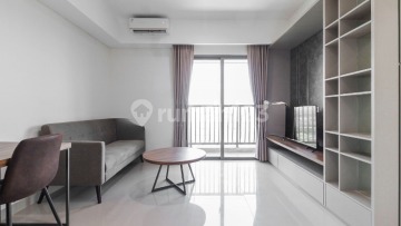 Tipe: 2 Bedroom (dengan desain platform bed yang modern). Kondisi: Fully Furnished (Interior desain minimalis & elegan). Fasilitas Unit: Kitchen Set lengkap dengan kompor & exhaust. Elektronik: Kulkas 2 pintu, Microwave, Mesin Cuci front load, Smart TV, & AC di setiap ruangan. Meja kerja/makan minimalis dengan 2 kursi kulit yang nyaman. Wardrobe luas dengan pintu kaca geser (sliding mirror door). Balcon yang luas dengan pemandangan tanpa aling-aling. Keunggulan: Lantai parket kayu di area kamar memberikan kesan hangat dan mewah. Fasilitas Apartemen & Lokasi: Akses Langsung: Terhubung dengan area retail/mal dan pusat kuliner. Strategis: Dekat dengan gerbang Tol Kunciran-Serpong & Jakarta-Serpong. Fasilitas Premium: Kolam renang infinity, gym, taman bermain anak, dan sistem keamanan 24 jam dengan access card. Sekitar Hunian: Sangat dekat dengan Sekolah Internasional (British School Jakarta, Jakarta Japanese School), Rumah Sakit (RS Pondok Indah Bintaro), dan pusat perbelanjaan. Hubungi