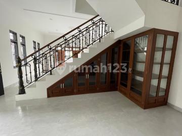 Dijual Rumah Brandnew, American Classic, di Jurang Mangu, Pd Aren Lt. 135 m2 Lb. 260 m2 Listrik 1300 watt SHM Kt 4 (bawah 1 atas 3) Km 4 + 1 (tamu) Kitchen set + Dapur Basah Carport 2 mobil Tangga + teralis besi tempa Dinding bata merah Listrik 1300 watt (token) Air jetpump (sumur bor) SHM on hand Semi furnished (Lemari dinding + bawah tangga jati tua) + kitchen set Harga Rp 2.3 M (nego)