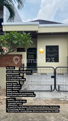 Disewakan rumah baru bagus bersih siap huni, lingkungan nyaman dalam Cluster, dekat kolam renang LT : 120 m2 LB : 100 m2 KT : 2+1 KM : 1+1 Dapur Service area Taman belakang Carport 1 mobil, 2 motor Lokasi strategis dekat ke semua fasilitas Bintaro