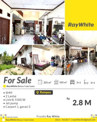 Rumah Halaman Luas Lokasi Strategis dekat ke Jaksel dan Bintaro - Rempoa Spesifikasi Luas Tanah 325 m² Luas Bangunan 105 m² Kamar tidur 3+1 Kamar mandi 2+1 2 lantai Listrik 5500 Va Air jet pump carport 1, garasi 3 SHM Lokasi di Rempoa, kawasan strategis dengan akses mudah ke Jakarta Selatan dan Tangerang Selatan Akses & Lokasi Strategis: Hanya 5-10 menit ke Pondok Indah & Lebak Bulus Dekat ke Bintaro & Ciputat Akses cepat ke Tol JORR, MRT Lebak Bulus Dekat pusat belanja: Pondok Indah Mall, Bintaro Plaza, Gandaria City Fasilitas umum lengkap: sekolah, kampus, rumah sakit, hingga pusat kuliner Harga Rp2,8 M (nego) *(nyo/vna)