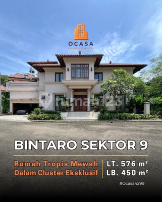 FOR SALE - BINTARO JAYA SEKTOR 9 RUMAH TROPIS MEWAH NUANSA VILLA BALI DALAM CLUSTER EKSKLUSIF Row Jalan Lebar Lingkungan Asri & Rindang Dekat ke CBD Bintaro Jaya & Akses Tol Luas Tanah 576 m² Luas Bangunan 450 m² Bangunan Secondary 2 Lantai + Rooftop Hadap Selatan SHM Kamar Tidur 4 + 1 Kamar Mandi 4 + 1 R. Hobby / Library Room Swimming Pool + Pool Heater 2 unit Rooftop 2 area Walk in Closet Kitchen Set Listrik 13.500 VA AC + Water Heater Garasi 2 Mobil Carport 2 Mobil Harga Rp 21 M Nego Ocasa4299