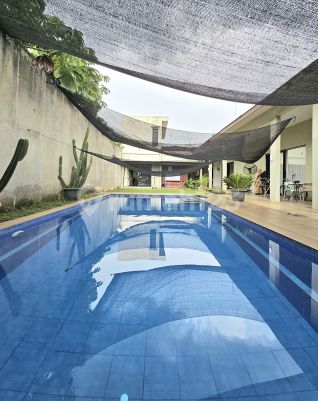 RUMAH ASRI DENGAN HALAMAN YANG LUAS DENGAN PRIVATE S.POOL DI BINTARO Bangunan 1 lantai Luas Tanah 969 m² Luas Bangunan 400 m² Kamar Tidur 5+1 Kamar Mandi 4+1 Garasi 4 mobil Halaman parkir 8 mobil Listrik 11.000 Pos jaga Swimming pool 4 x 9 SHM - Pavilliun 2 lantai 1 kamar tidur 1 kamar mandi Walking closet Harga 8,9 M nego 0815981xxxx doni