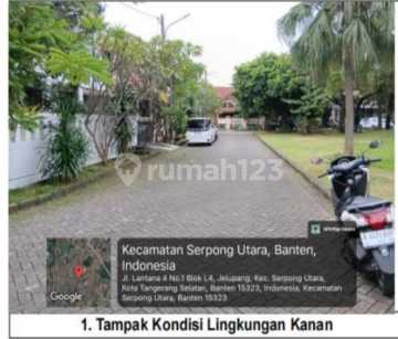 DIJUAL RUMAH MURAH VIA LELANG LOKASI : VILLA MELATI MAS JLN. LANTANA JELUPANG SERPONG UTARA TANGSEL LT : 299 m2 LB : 300 m2 LOKASI DI HOOK KONDISI KOSONG HARGA : 2,5M