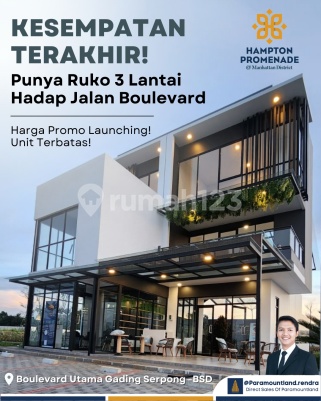 Ruko Hampton Promenade Avanue By Paramountland 3Man di BOULEVARD GADING SERPONG project ruko bagus lokasi di kawasan Entertainment Boulevard Gading Serpong Konsep district seluas 22 hektar Hampton @Manhattan District • Ruko 2 Lantai Harga : 3 M an • Ruko 3 Lantai Harga : 3.4M an • Dikelilingi lebih dari 40 Cluster terhuni • Dikelilingi Universitas, Sekolah, Hotel Bintang 4&5, Dan Rumah Sakit • Dilewati lebih dari 6500 kendaraan/jam • Berada di Jln Boulevard Utama Gading Serpong - BSD Info Promo & Visit Rendra - +62851xxxxxxxx Direct Sales Of Paramountland