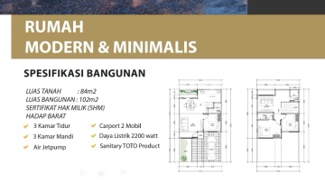 *Villa Melati Mas* Blok SR Luas Tanah : 84m Luas Bangunan : 102m SHM Hadap Barat Listrik 2200 watt 3 Kamar Tidur 3 Kamar Mandi Carport 2 Mobil *1,698M Nego* LA