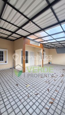 DIJUAL Rumah Baru Selesai Renov Di Villa Melati Mas Lt.200m² Lb.150m² 1 Lantai Kt.3+1 Km.2+1 Jet pump Listrik 2200watt Carport 2 mobil dgn canopy Hadap Selatan SHM Harga 2,5M