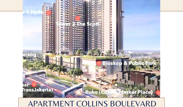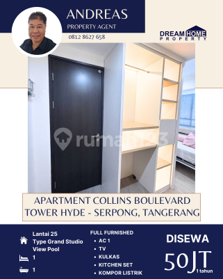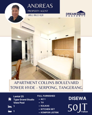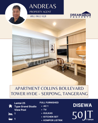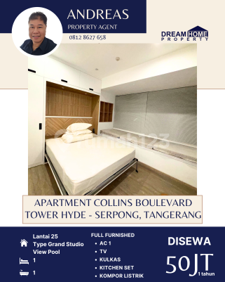 DISEWAKAN Apartment Collins Boulevard Tower Hyde Lantai : 25 Luas Bangunan : 33m² Type Studio Kamar Mandi : 1 Listrik : 2.200 watt FULL FURNISHED -AC 1 -TV -KULKAS -KITCHEN SET -KOMPOR LISTRIK Condition: Unit Baru Full Furnished dan Elektronik Unit Mewah setara Hotel Bintang 5 Facility: ☑️Swimming Pool ☑️Gym Fitness ☑️Kids Playground ☑️Brand New Full Furnish ☑️Kitchen set ☑️ TV 43” ☑️AC 1 PK Lemari es ☑️Queen Convertible Bed 160 x 200 King Koil Additional Info: ☑️Landmark ☑️Aeon Mall BSD City (15 menit) ☑️ICE BSD (20 menit) ☑️Summarecon Mall Serpong (10 Menit) ☑️The Breeze BSD City (15 menit) ☑️Living World Mall (10 menit) ☑️Halim Perdanakusuma Airport (60 menit) ☑️International AIrport ☑️Soekarno-Hatta (30 menit) ☑️IKEA Indonesia (15 menit) ☑️Kuliner – Food Area Flavour Bliss BSD (20 menit ) ☑️Living World Mall ( 10 menit) ☑️The Breeze BSD (15 menit ) ☑️Universitas Swiss-German University (10 menit) ☑️BINUS Alam Sutera University (10 menit) ☑️Pelita Harapan University (20 menit) Rent Charge: Bulanan Rp 5.000.000 Tahunan Rp 50.000.000 Harga sewa sudah termasuk IPL dan Maintenence Fee Tidak termasuk air, listrik dan wifi. Harga Sewa Rp 50Jt/tahun Nett ☎️More info: Andre - 0812862xxxx Dream Home Property