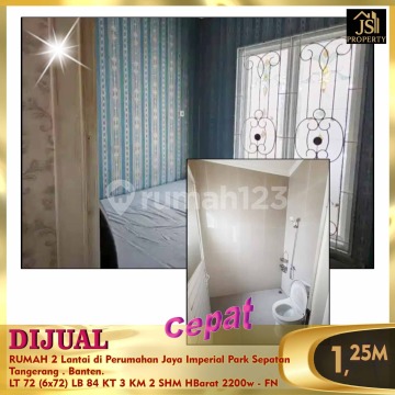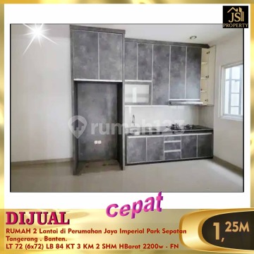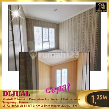 DIJUAL RUMAH 2 Lantai di Perumahan Jaya Imperial Park Sepatan Tangerang . Banten. Luas Tanah 72 m² Ukuran Dimensi 6 x 12 m² Luas Bangunan 84 m² 2 Lantai Kamar Tidur 3 Kamar Mandi 2 Semi Furnished Listrik 2200 Watt Air Aetra Hadap Barat Siap Huni SHM Harga 1.250M Nego - FN