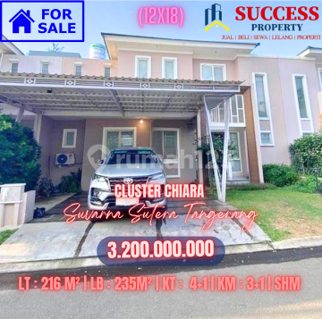 EDISI TURUN HARGA Dijual Cepat !!! Rumah 2 lantai di Cluster Chiara Suvarna Sutera, Cikupa Tangerang. Spesifikasi: - Luas Tanah : 216 m² - Dimensi : 12x18 - Luas Bangunan : 235m² - Sertifikat SHM - Kamar Tidur : 4+1 - Kamar Mandi : 3+1 - Ada kolam ikan (2.5x3) - Ada ruangan service diatas - Hadap Utara - Air PDAM - Listrik 7700 - IPL 750K - AC 5 unit - Wardrobe kamar dan Ruang tamu - Kitchen set - Sirkulasi udara bagus dan terang - Garasi depan 2 mobil - Kamar pembantu 1 di atas - Semua terawat baik - Siap huni - Dekat sekolah Laurensia Open price 3.2M Nego Turun harga jadi 2,9 M - MASIH NEGO List By : ~. onr.yuliant