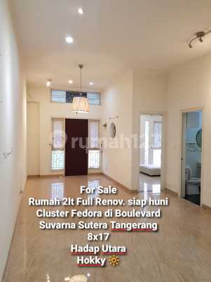 DIJUAL RUMAH SUVARNA SUTERA CLUSTER FEDORA TANGERANG LT = 136m2 (8mx17m) LB = -+150m2 karena renovasi 3 KT + 2 KM (1 Master Bedroom + KM dalam) + Letak di BOULEVARD ( jalan depan rumah paling lebar ) + 2 Lantai + Full RENOVASI ( 4 AC. 2 Water Heater. Kitchen Set. Dll ) + Lantai granit + LT 2 gudang & jemuran + Carport 1 & parkir 2 motor 2 sepeda + Sport Club Cluster (dekat Kolam Renang) + Double Gate Security System + Full CCTV di Cluster + Udara Sejuk & Fresh Fasilitas & Tempat Suvarna Sutera + Sutera Loop ( Pasar 8 ) + Suvarna Shuttle Bus (tujuan Central Park, Jakarta) + Pasar 8 (seperti di Alam Sutera) + Terrace 8 & Terrace 9 (ruko) + Sekolah Santa Laurensia + SPBU Shell + Container Mall by Samanea + Perumahan & pertokoan Lavon + 10 menit akses tol Cikupa Lokasi di Cluster Fedora , Suvarna Sutera, Tangerang Cd.Rtlabuan