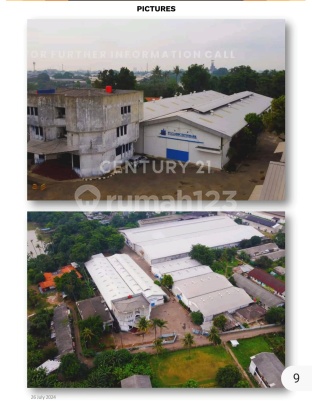 Address Jl. M.H. Thamrin No.lll, Cikokol Tangerang, land size 22,285 m2 Built up 12,261m2 (Factory + Warehouse) SHGB (Expired 16 Feb 2035) : Sale Rp. 178 billion Rent Rp 4 billion/ Year (Lease) Near Office Space, Supermarket, School, Clinic PRIMAYA HOSPITAL TANGERANG Transmart Carrefour Tangerang Center, Hotel Olive, PT. Indofood Fortuna Makmur Advantages & Potential : Strategically located, surrounded by various industrial zones nearby access to the CBD in central &south Jakarta Fast access to 2 Tol gates leading to Jakarta, Bogor, Merak, etc. Highly secure with one road access in & out of the property. Plenty of space for storage or parking of fleets of heavy / light vehicles. River proximity doesn’t cause any flooding & provides easy access to sources of water. Main road access provides quick drive to the other industrial zones in Tangerang. Major neighbors such as PT. Argo Pantes & PT. Indofood Fritolay Makmur provides upgrading in property value. The building location is not affected by the CBD “odd / even” driving regulation. Employee mess building is included within the property. Its location provides a strategic transit for logistic support between the city Jakarta and the eastern portion of western Java. Distances from CGKAirport Halim Airport : 26 KM Tangerang Train station : 6 KM Tanjung Priok port Nearest Toll Gates: 40 KM / 1 Hour (depending on traffic) / 15 minutes (depending on traffic) / 1 Hour 12minutes (depending on traffic) 4 KMTol Tangerang Selatan Cikokol 5.5 KM Tol Karawaci Timur #183978