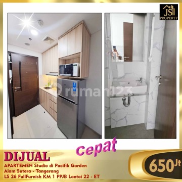DIJUAL APARTEMEN Studio di Pacifik Garden Alam Sutera - Tangerang Dekat Universitas Binus Luas bangunan 26 m² Studio Kamar mandi 1 Full Furnish Tower C, lantai 22 Sertifikat PPJB Harga 650 juta Nego - ET