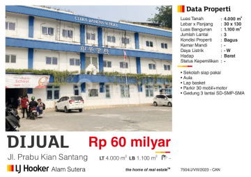 Dijual Gedung Sekolah Citra Bangsa School Sd Smp Sma Jl Prabu Kian Santang Siap Pakai , Parkir 30 mobil, lapangan Basket, Aula