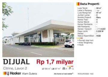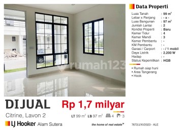 Dijual Rumah 2 Lantai Lavon 2 ,Citrine Tangerang Siap Huni Bagus HGB