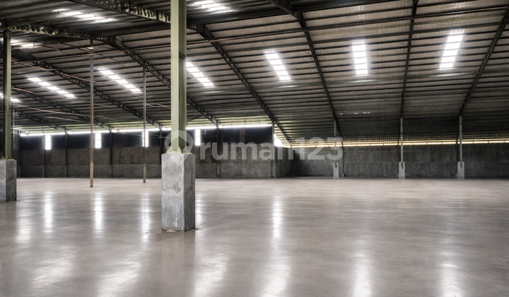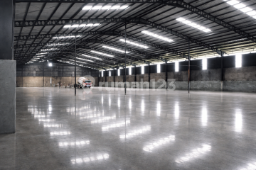 Disewakan Gudang baru renovasi Lokasi jalan utama Serang Raya Sangat dekat ke pintu tol Luas tanah 2hektar Luas bangunan 7700m2 Akses kontainer 40ft Bebas banjir Bebas pungli Izin industri Harga 47 rb/m2/bulan