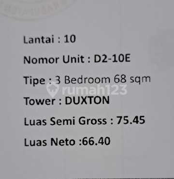 3 br Luas Semi gross. 75.44 Luas Netto. 66.40 Ppjb 1.5 M TURUN JADI 1.188 M
