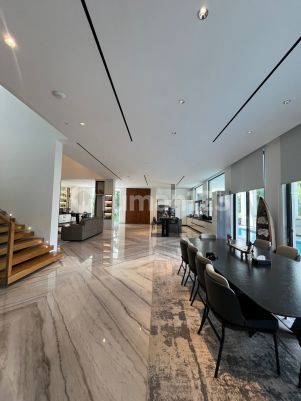 - LT: 551 m² - LB : -/+ 1.400 m² - 3 lantai + Rooftop - SHM - Kamar Tidur : 5 + 2 - Kamar Mandi : 4 + 1 (3 bathtub + shower) - powder room - Ruang Gym - Playroom - Ruang Kerja - Ruang Home Theater - Dapur + Kitchen Set : 2 - Bar - Garasi : 2 Unit Mobil - kamar tidur staff : 3 - kamar mandi staf : 1 (shower + kloset duduk) - kamar setrika : 1 - cat room : 1 - dog kennel : 2 - storage room - 23m Swimming Pool + jacuzzi - Listrik 23000 - AC VRF Fuji - Solar panel 10600 VA - Fully Furnished - Lebar sekitar 17 m x 30 m. Punya 2 muka karena di hoek HARGA 35M HUB: MEI 0811889xxxx MELODY PROPERTY