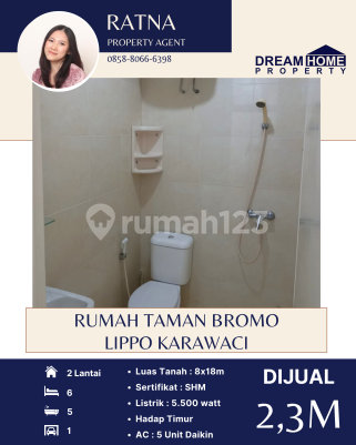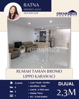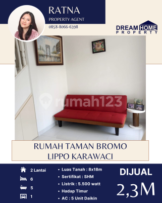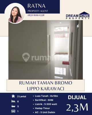 Dijual Rumah Taman Bromo - Lippo Karawaci Luas Tanah : 8x18 Kamar Tidur : 6 Kamar Mandi : 5 Listrik : 5500 SHM Atap Baja Ringan Kitchen Set Kompor 4 tungku Water Heater 5 AC Daikin Hadap Timur Harga :2.3M nego More Info : Ratna 0858xxxxxxxx DreamHome Property