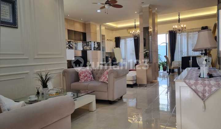 Rumah dengan spesifikasi, sebagai berikut : Kamar tidur 5+1 Kamar mandi 4+1 2 Lantai Listrik 4400 watt 5 unit AC. Luas Tanah 236 m2 Luas Bangunan 270 m2 Terdapat : Jet Pump Carport 2 Mobil Taman Depan Belakang . Surat : SHM *Harga : 4,37 M nego.