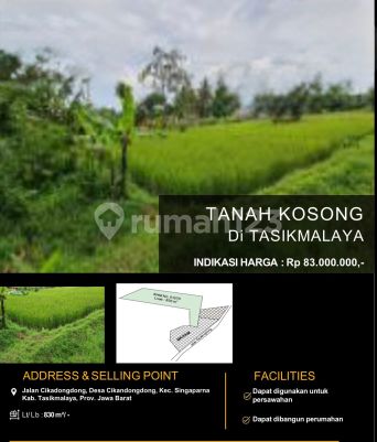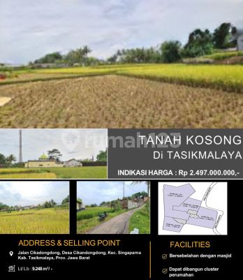 direct buyer eksklusif SAP For Sale Tanah kosong - beberapa bidang (1 area) Jl. Cikadongdong, Singaparna Kab. Tasikmalaya, Jawa Barat Spesifikasi Umum - Tanah sawah / tanah kosong - Akses jalan lingkungan - Lingkungan hijau & berkembang - Cocok untuk: * Persawahan * Cluster perumahan * Investasi / land banking - Dokumen SHM (pecah beberapa bidang) ⸻ Detail Per Bidang Bidang A LT : ± 6.521 m² SHM Indikasi harga : Rp 1.304.000.xxx Bidang B LT : ± 2.808 m² SHM Indikasi harga : Rp 281.000.xxx Bidang C LT : ± 514 m² SHM Indikasi harga : Rp 51.400.000 Bidang D LT : ± 830 m² SHM Indikasi harga : Rp 83.000.000 Bidang E LT : ± 9.317 m² SHM Cocok cluster perumahan Indikasi harga : Rp 2.516.000.xxx Bidang F LT : ± 9.248 m² SHM Bersebelahan dengan masjid Indikasi harga : Rp 2.497.000.xxx ⸻ Total Gabungan Total luas : ± 29.238 m² (± 2,9 Ha) Indikasi harga paket : ± Rp 6,73 M