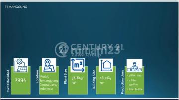 DIJUAL PABRIK AIR DI JAWA TENGAH Lokasi : Temanggung - Jawa Tengah Spec : • Luas Tanah 38.843 m² || 3,8 Ha • Luas Bangunan 18.264 m² - SHGB - Semua Ijin Masih Aktif - 5 Production Lines ( 1 Filler 5 Gallons, 3 Filler Cups, 1 Filler Bottle Inline with blow bottle machine) • 3 Line Cup 1200 boxph, 2004xxxx & 2007 Hayashi • 1 Line Botol 225 boxph, 2014 APM • 1 Line Gallon 500 bph, Capsnap - Akses Container 40 Feet - Akses Container 40 Feet - *Masih Beroperasional* - *Direct Owner* HARGA JUAL 150 Milyar - Exc PPN - NEGOTIABLE Terima Titip dan Jual Beli Property Seluruh Indonesia MORE INFO Maryana HH | OSalo | 540 C21 Zawa Group