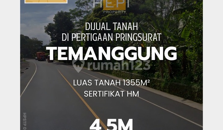 Dijual Tanah kosong pertigaan Pringsurat Temanggung Luas Tanah 1355m² Sertifikat HM Harga 4,5 M