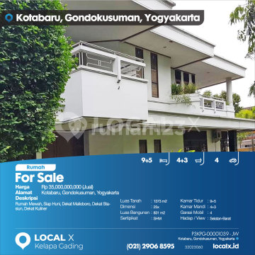 Rumah Mewah, Siap Huni, Dekat Malioboro, Dekat Stasiun, Dekat Kuliner For Sale - Jual Rumah Kotabaru, Gondokusuman, Yogyakarta Harga. Rp 35,000,000,000 (Jual) Deskripsi Properti. Rumah Mewah, Siap Huni, Dekat Malioboro, Dekat Stasiun, Dekat Kuliner Luas Tanah. 1373 m2 Dimensi. 25x Luas Bangunan. 831 m2 Sertipikat. SHM Kamar Tidur. 9+5 Kamar Mandi. 4+3 Garasi Mobil. 4 Hadap / View. Selatan-Barat LOCAL X Kelapa Gading ******** ⓪②① ②⑨⓪⑥ ⑧⑤⑨⑤ P3KPG-0000xxxx-JW-J