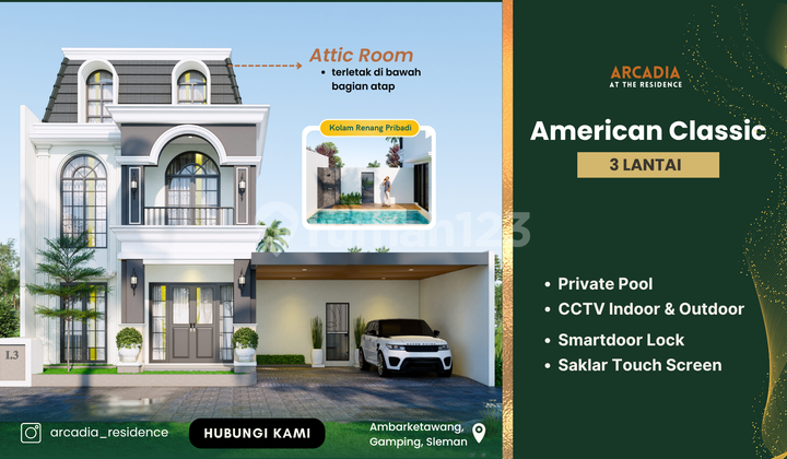 4 Kamar Tidur dan 3 Kamar Mandi dengan Private Pool + Attic Room Desain American Style Bonus : Kanopi Cor Dak & Smarthome System POSISI SANGAT STRATEGIS : * Dekat RS. PKU Muhammadiyah Gamping * Dekat dengan Kampus UMY * Dekat dengan Kampus UNJAYA * Dekat dengan Kampus Mercu Buana * Dekat dengan Kampus Alma-Ata * Dekat Alfamart / Indomaret * Dekat SPBU * AL-AZHAR International Schools sekitar 10 menit * Malioboro sekitar 20 menit * UGM sekitar 30 menit * Bandara NYIA sekitar 50 menit TERSEDIA 8 KAV. SISA 6 KAV. : * Kav. I.1 Type Luxury 95/159 (HOOK) * Kav. I.3 Type Luxury 95/124 * Kav. I.4 Type Luxury 95/124 * Kav. I.5 Type Luxury 95/124 * Kav. I.6 Type Luxury 95/124 * Kav. I.7 Type Luxury 95/124 (HOOK) POIN PENTING : * Pembayaran : Cash Keras, Cash Tahap dan KPR * KPR dapat dibantu prosesnya * Cocok untuk hunian dan investasi jangka panjang * Survei Lokasi Langsung Hubungi WA ALAMAT : Marketing Gallery Jalan Ring Road Barat 7C Banyuraden, Gamping BEST REGARDS
