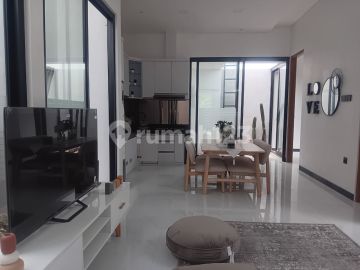Cluster Mewah di kelasnya. Banyak yang suka dengan model nya yang Modern, gaya yang kekinian Industrial. Cluster yang tampak cantik dan tidak mengurangi fungsi dari setiap sudut ruangannya. Tata ruangan yang terkoordinir dengan baik, ruang tamu yang pas, dapur yang nyaman & tambahan kitchen set yang menambah fungsi, 3 kamar tidur yang luas dan 2 kamar mandi yang sangat nyaman untuk Anda berlama-lama juga melakukan aktifitas mencuci baju. Hunian yang lain daripada yang lain dengan memanfaatkan halaman depan samping carport sebagai ruang tamu outdoor, menambah ruang privasi Anda. PRICELIST UNIT | Kavling 1 | 143 / 77 | Finishing | Rp 1.395.000.xxx | | Kavling 2 | 127 / 75 | Konstruksi | Rp 1.357.000.xxx | | Kavling 3 | 127 / 75 | Konstruksi | Rp 1.357.000.xxx | | Kavling 4 | 127 / 75 | Siap Huni | Rp 1.357.000.xxx | SPESIFIKASI : * 3 Kamar Tidur * 2 Kamar Mandi * Ruang Tamu & Ruang Keluarga * Dapur & Ruang Makan * Taman Semi Outdoor di dalam rumah * Laundry / Service Area * Carport luas (muat 2 mobil + motor) * Taman depan & belakang * Akses jalan paving SPESIFIKASI BANGUNAN : * Pondasi batu kali & struktur beton bertulang * Dinding bata merah (plester, aci, cat Jotun/setara) * Rangka atap baja ringan + atap beton flat mutiara * Lantai granit 60x60 * Kusen pintu jati solid * Jendela aluminium hitam solid * Listrik 2200 watt * Air sumur bor 24m + tandon Pinguin 520L * Meja dapur granit, *bonus kitchen set + kompor tanam + kulkas + wastafel* * Kamar mandi granit, shower, closet duduk, exhaust fan, *bonus water heater kamar utama* * Instalasi AC di setiap kamar * Pagar depan + pintu tralis + kanopi kaca * Carport granit 60x60 BONUS INTERIOR SEMI FULL FURNISH Sudah termasuk: * Instalasi AC disetiap Kamar * Sofa set (kursi + meja) * TV AQUA 50 inci * Set meja makan (kursi + meja) * Kitchen set lengkap * Water heater * Mesin cuci LG 7 kg * Kulkas LG Smart Inverter * Google TV LEGALITAS : ✅ SHM ✅ IMB / PBG Tertarik atau mau tanya-tanya dulu? Langsung saja chat via WhatsApp! - Show Unit Ready! -