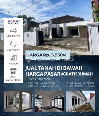 Dijual Rumah Condong Catur Sleman Yogyakarta LT 1020m² LB 350m² LM 22m KT 3 KM 3 Dapur Garasi 2 Carport 8 Hadap utara Air sumur Listrik 3500 watt HGB 2054 Dekat Pasar Colombo 7 menit ke UGM