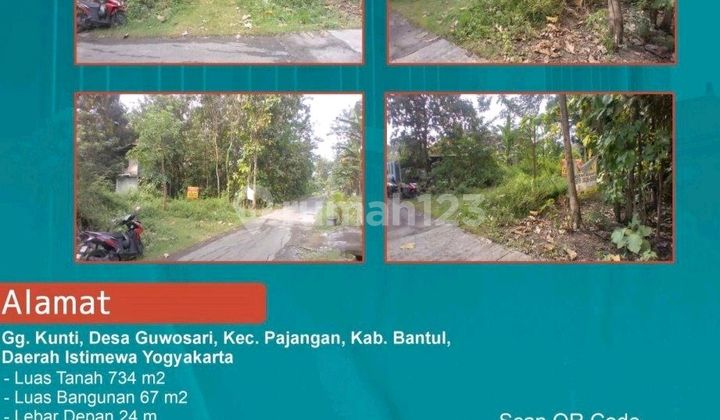 Tanah Murah Di Desa Guwosari,Kec. Pajangan - Bantul, Cocok Untuk Usaha Perkebunan + Investasi Spesifikasi : - Luas Tanah 734 m² - Luas Bangunan 67 m² - Lebar Depan 24 m - Lebar Jalan 4 m - Legalitas SHM Benefit : Dekat dengan Masjid, SMK N1 Sewon, dekat perumahan, Goa Selarong, Ingkung Mbah Kentol, Calon Lokasi UIN, Padat Penduduk. Fasum (Toko, Swalayan, Minimarket, Sekolahan) Harga Rp850.000.xxx Nego