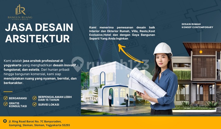 Jasa Arsitek Jogja Profesional Desain Rumah Minimalis & Modern Desain bukan sekadar tampilan, ini tentang menciptakan kesan pertama yang tak terlupakan. Kami hadir untuk membantu Anda mewujudkan desain yang bukan hanya indah, tapi juga fungsional dan tepat sasaran. Setiap detail kami pikirkan dengan matang, agar pesan yang ingin Anda sampaikan benar-benar sampai dan berkesan. Kenapa pilih jasa desain kami? - Konsep Kreatif & Original Setiap desain dibuat dari nol, disesuaikan dengan karakter brand atau kebutuhan Anda bukan template pasaran. - Konsultasi Personal Kami mendengarkan ide Anda, lalu mengembangkannya menjadi karya visual yang lebih maksimal. - Proses Cepat & Responsif Revisi? Diskusi? Tenang, tim kami siap merespons dengan cepat tanpa menghambat timeline Anda. - Desain Estetik & Fungsional Bukan cuma bagus dilihat, tapi juga efektif menyampaikan pesan dan menarik perhatian. - Harga Transparan Tanpa biaya tersembunyi jelas dari awal hingga akhir. - Revisi Fleksibel Kami berikan ruang revisi agar hasil akhir benar-benar sesuai dengan harapan Anda. Saatnya tampil lebih profesional dan menonjol dari yang lain. Hubungi kami sekarang dan ubah ide Anda menjadi desain yang memikat!