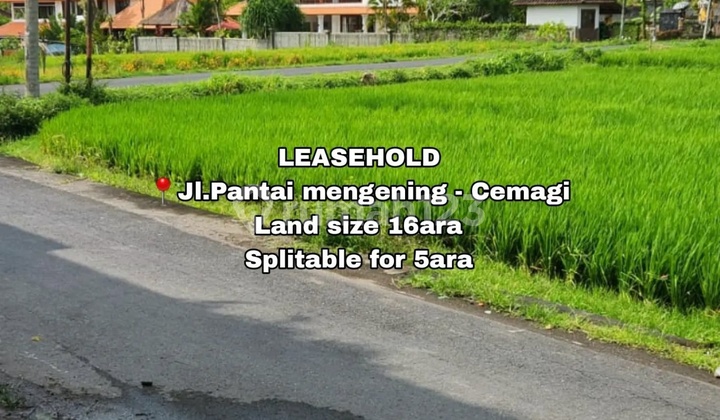 Land for rent on Jalan Pantai Mengening Cemagi. Strategic location and beautiful, long, wide plot with rice paddy and ocean views. - Land area 1,30...