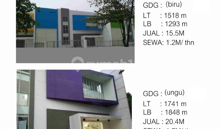 Disewakan pabrik di Bekasi Jakarta : Luas tanah 43.068 meter Luas bangunan 28.552 meter Shgb Harga sewa : Rp 20.557.440.000 / tahun More Info : ...