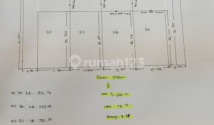 Luas kantor 3 lantai +/- 400m2, luas gudang 400m2